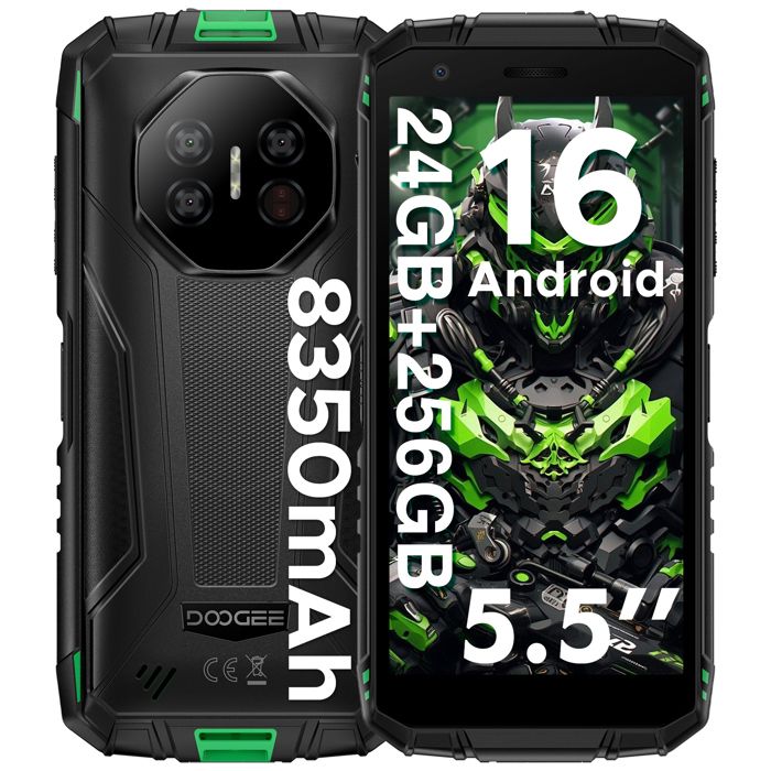 Smartphone Incassable DOOGEE Fire 3 Ultra - 24Go+256Go - 8350mAh 5.5” HD+ Telephone Incassable Android 16 - 16MP+8MP - NFC- Vert