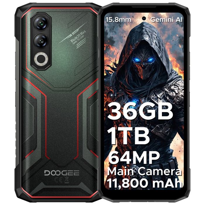 Smartphone Incassable DOOGEE Blade20 Max - 11800mAh 6.6” HD+ Telephone Incassable Android 15 - 36Go+1To -64MP+16MP - NFC - Rouge