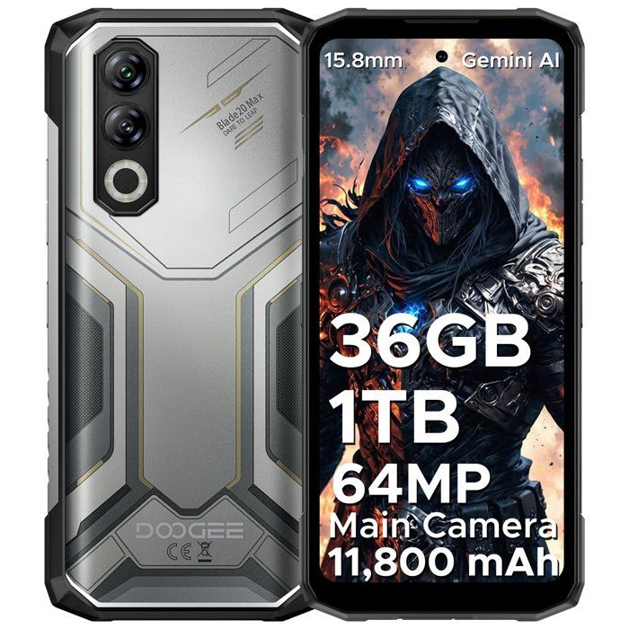 DOOGEE Blade 20 Max 11800 mAh/33 W smartphone incassable 32 Go + 1 To Android 15 telephone portable robuste - Argent