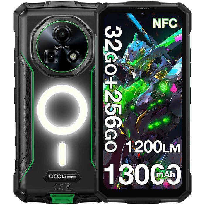Telephone Portable Incassable 5G DOOGEE Fire 7 Pro 32Go+256Go 66 13000mAh Smartphone Incassable Caméra 64MP Double SIM/NFC Vert