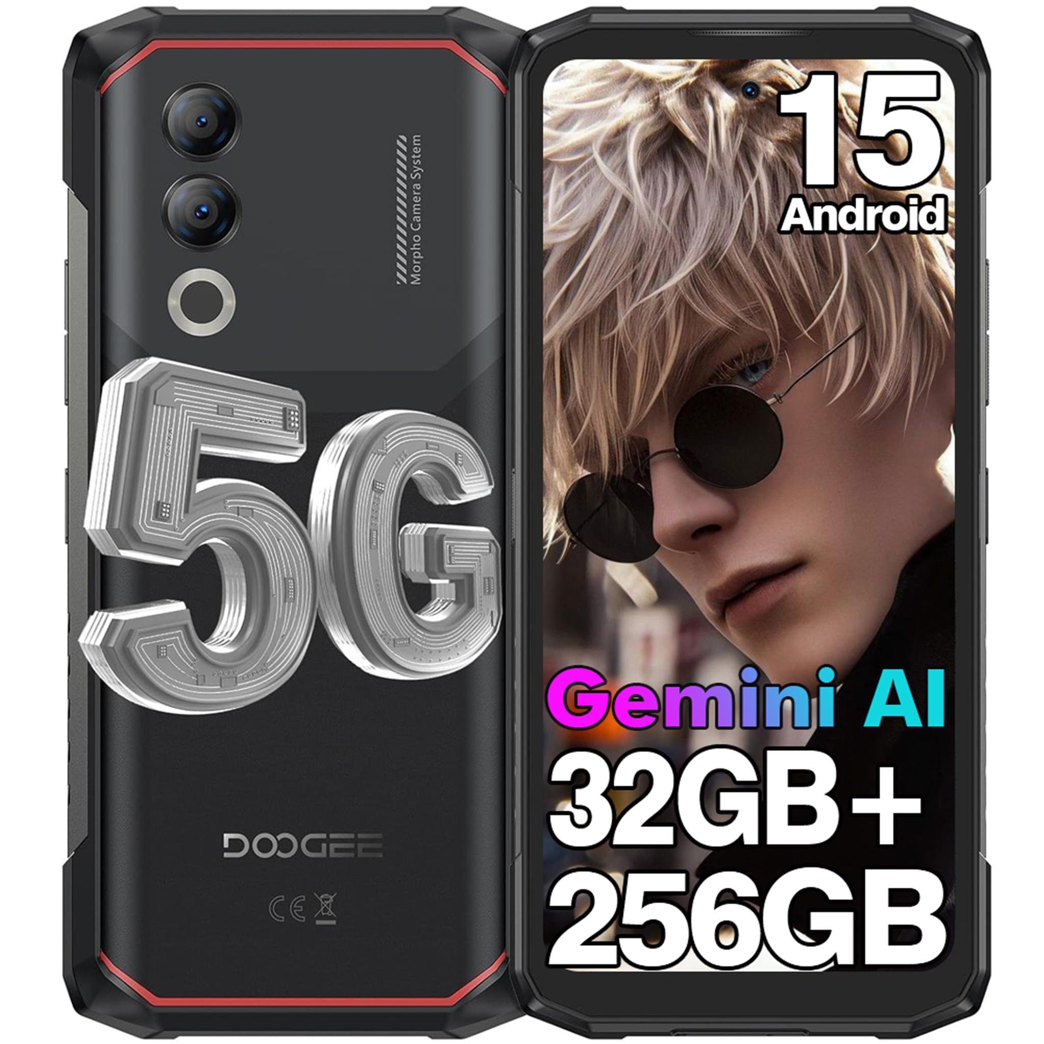 DOOGEE V40 Telephone Portable Incassable 5G, 32GB RAM+512GB ROM(TF 2TB) Smartphone Incassable Android 14 avec 120Hz 6,78” FHD+ Écran, 4nm D7300 CPU/AI 108MP/WiFi 6E/BT 5,4/NFC/3 Fente de Carte, Rouge