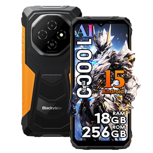 Blackview Fort 1 18Go+256Go AI Telephone Portable Incassable, 10000mAh, Téléphone Débloqué, 16MP+8MP, 6.56" HD+ Smartphone Incassable Etanche, Dual 4G LTE/GPS/NFC/OTG Phones (Orange)