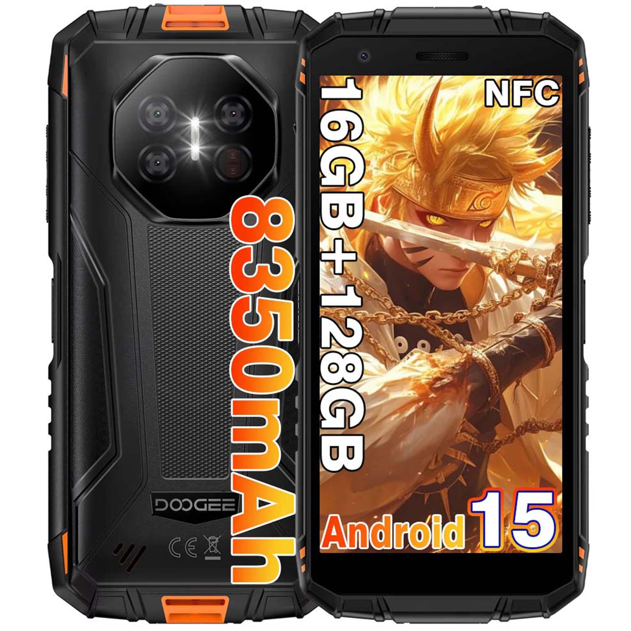 DOOGEE Fire 3 Pro Smartphone Incassable Android 15, 16GO+128GO/2TO Téléphone Portable Incassable 8350mAh 16MP 5.5" Dual SIM 4G/NFC/OTG/GPS - Orange