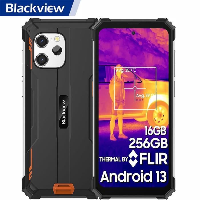 Blackview BV8900 Téléphone Portable Incassable Android 13 65 16Go+256Go Caméra Thermique 64MP FLIR Amélioré 10380mAh IP68 Orange