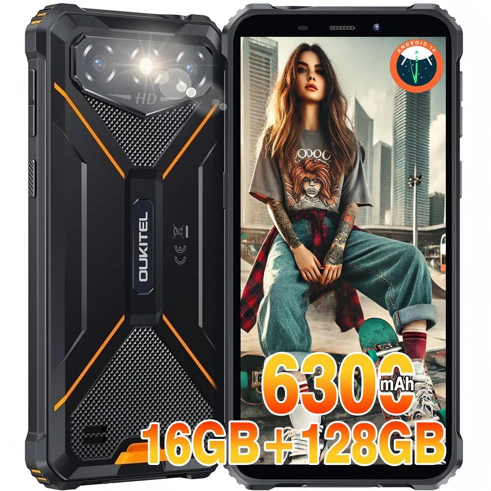 OUKITEL G3 Smartphone Incassable - 16GB+128GB(1TB) 6300mAh Téléphone Incassable Écran 6" HD+ IPS Corning Glass 5 Incassable Android 14,13MP+5MP IP68/69K Dual 4G SIM/Jack 3,5mm/OTG/GPS/Face ID,Orange