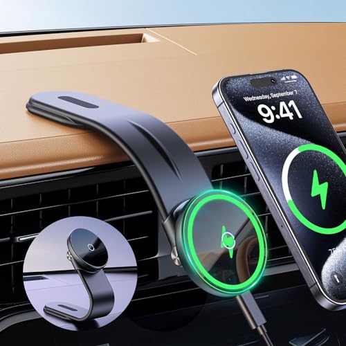 MAGJIEYX Support Telephone Voiture Induction pour MagSafe, 15W Magnétique Chargeur sans Fil Voiture pour iPhone 16,15,14,13,12 Série, pour MagSafe Cas, Adapté à Ventilation/Tableau de Bord/Pare-Brise