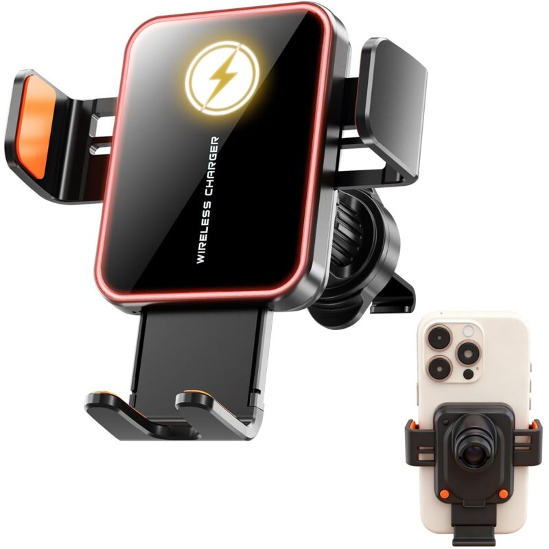 MOKPR 15W Support Telephone Voiture Induction, [Serrage Automatique] Rapide Chargeur Induction Voiture, Grille d'aération Tableau de Bord Pare-Brise pour iPhone 16/15/14/13/12&Samsung S24 S23 S22