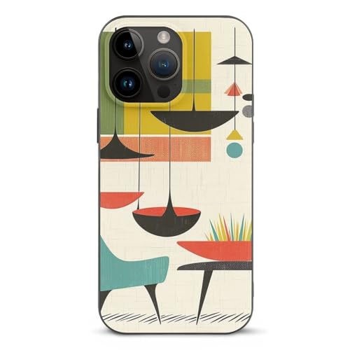 EMPYRI Coque de téléphone imprimée moderne du milieu du siècle pour iPhone 13 Pro Max, ultra fine, résistante aux rayures et aux chocs - Coque de téléphone en TPU noir, avec recharge sans fil