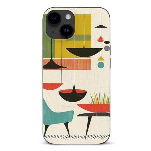 EMPYRI Coque de téléphone imprimée moderne du milieu du siècle pour iPhone 14 Pro, ultra fine, résistante aux rayures et aux chocs, en TPU, avec recharge sans fil, anti-jaunissement