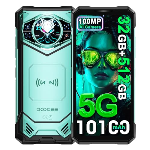 DOOGEE S200 X Telephone Portable Incassable 5G, 32GB+512GB/TF 2TB, 10100mAh/33W, 100MP+20MP,MTK 7050, Ecran arrière 1,32'' Smartphone, 6.72”+120Hz,Téléphone WiFi6/NFC/DDR5/Face ID/OTG (Vert)
