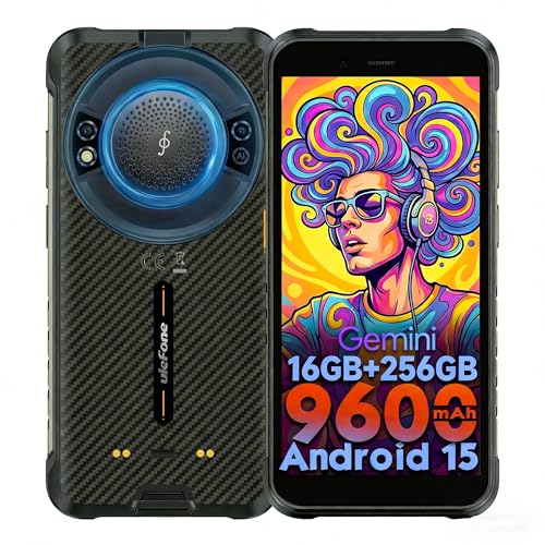 Ulefone RugKing Android 15 Telephone Portable Incassable,16Go+ 256Go/2T, AI Caméra 50MP+8MP+2MP, Écran 5,99''HD+, 9600mAh Smartphone Incassable, 126db Haut-Parleur Lampe Torche/OTG/NFC/GPS/IP68/IP69K
