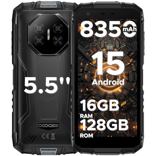 DOOGEE Fire 3 Pro Telephone Portable Incassable, Téléphone Incassable Android 15, 16Go+128Go/TF 2To, 5,5" HD+ Smartphone Incassable, 8350mAh/18W, UNISOC T7200 Octa-Core, Face ID/Finger ID/NFC, Gris