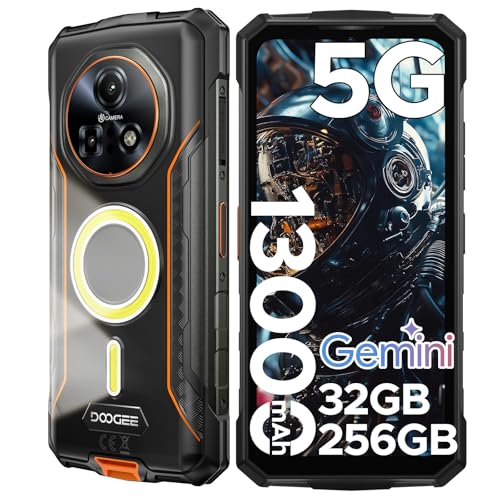 DOOGEE Fire 7 Pro Telephone Portable Incassable 5G, Fonction POC, Smartphone Incassable avec 1200 Lampe Projecteur, 13000mA, 32Go+256Go, 6,6'' 64MP, Octa Core Gemini AI/Fingerprint/Face ID/OTG/NFC