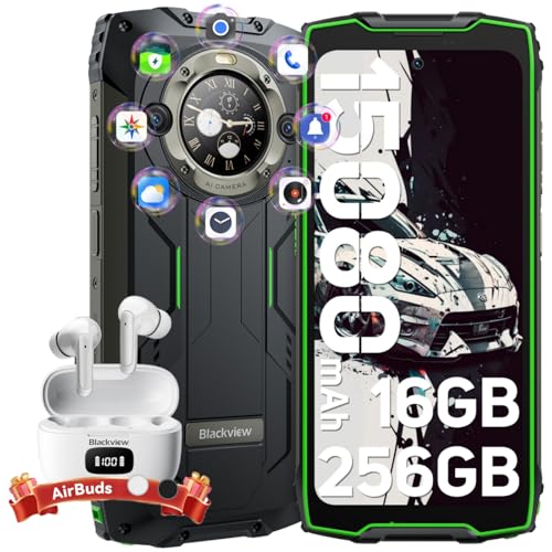 Blackview BV6200 Plus 24Go+256Go Telephone Portable Incassable 2025, Android 14 Téléphone Débloqué, 11000mAh, 16MP+13MP, 6.56" HD+ Smartphone Incassable Etanche, Dual 4G LTE,GPS,NFC,OTG Vert