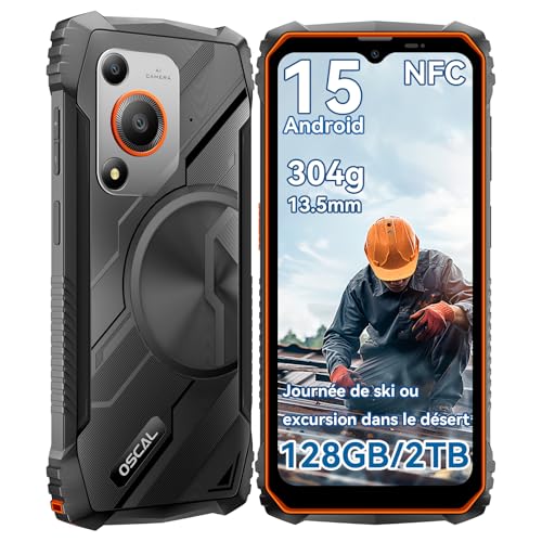 OSCAL Marine 1 Telephone Portable Incassable Android 15,12GB+128GB/2TB Téléphone Incassable, Smartphone 6.56" HD+ 90Hz,16MP, IP69K/Dual SIM/NFC/GPS/2 Ans Garantie
