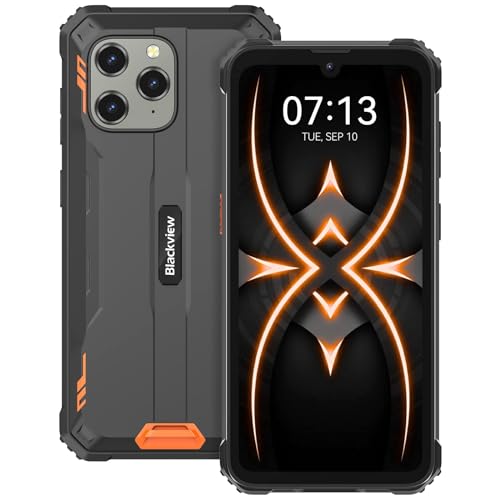 Blackview BV4800 Pro 12Go+128Go Telephone Portable Incassable 2024, Android 14 Téléphone Débloqué, 5180mAh, 13MP+5MP, 6.56" HD+ Smartphone Incassable Etanche, Dual 4G LTE,GPS,NFC,OTG,FM, Orange