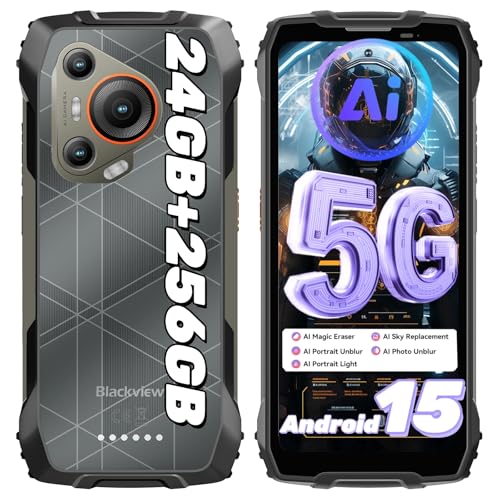 Blackview BL7000 AI Telephone Portable Incassable Android 15 Téléphone Incassable, 256Go+24Go/2To TF, 5G Ruggedisé Débloqué 6,78''FHD+ 120Hz, 50MP+20MP Vision Nocturne, NFC/GPS/Fingerprint/IP68/IP69K