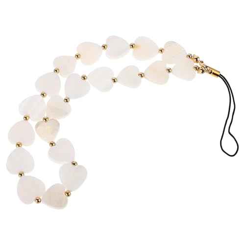 ULTECHNOVO Chaîne de Téléphone en Perles Cœur Blanc pour Femmes, Accessoire Téléphone Portable Polyvalent en Coquillage, Design Simple et Élégant pour Toute Occasion