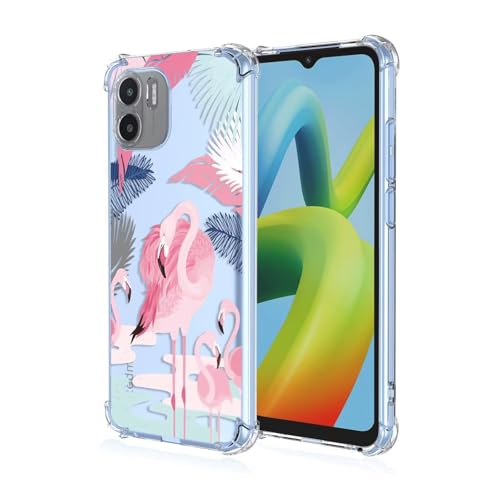 Topme Coque pour Redmi A1 / Redmi A2 (6.52" inches), Étui de Téléphone Portable en Silicone TPU Souple avec Motif Peint Transparent - Flamant Rose 2