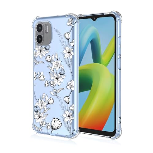 Topme Coque pour Redmi A1 / Redmi A2 (6.52" inches), Étui de Téléphone Portable en Silicone TPU Souple avec Motif Peint Transparent - Fleurs 6
