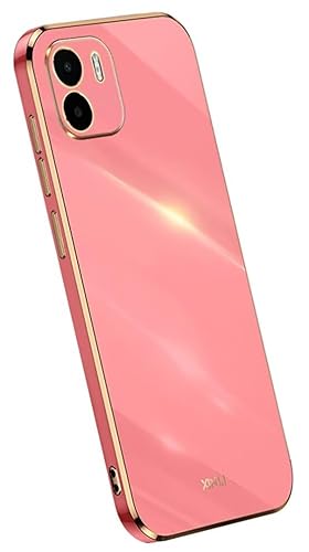 COMAKU Coque pour Xiaomi Redmi A1 / Redmi A2, Etui Housse de Téléphone en Silicone TPU Colorée et Brillante avec Bord Doré Design - Rose