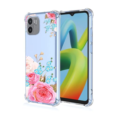 Topme Coque pour Redmi A1 / Redmi A2 (6.52" inches), Étui de Téléphone Portable en Silicone TPU Souple avec Motif Peint Transparent - Fleurs 5