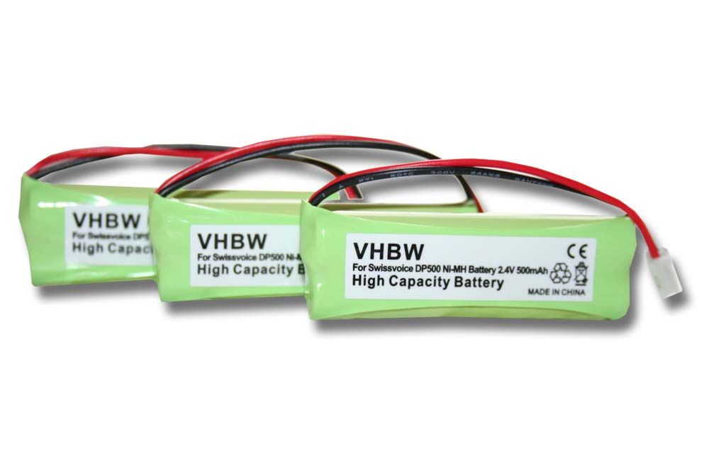 vhbw 3X Batterie Compatible avec Swissvoice DP500, DP500 Eco Plus, DP550, DP550 Eco Plus, DP550 BT téléphone Fixe sans Fil (500mAh, 2,4V, NiMH)
