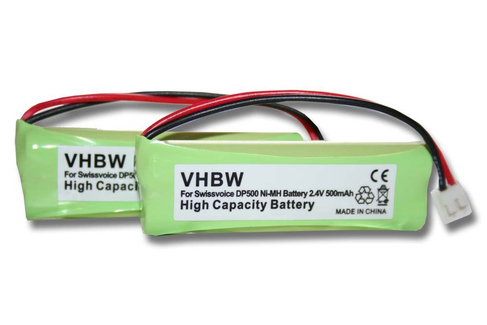 vhbw 2X Batterie Compatible avec Swissvoice DP500, DP550 BT, DP500 Eco Plus téléphone Fixe sans Fil (500mAh, 2,4V, NiMH) - Remplacement pour GP1010, GPHC05RN01, VT50AAAALH2BMJZ