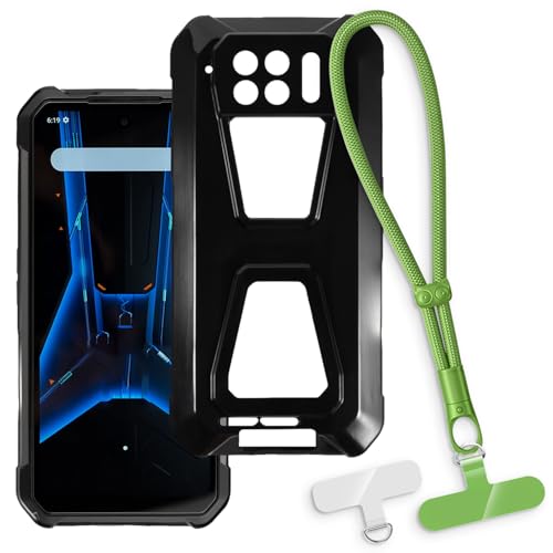 OAGELIM 2-en-1 Coque de Protection avec Dragonne Compatible avec 8849 Tank 3S Housse de Téléphone avec Lanyard Détachable, Anti-Dérapante Anti-Perte (Noir + Vert)