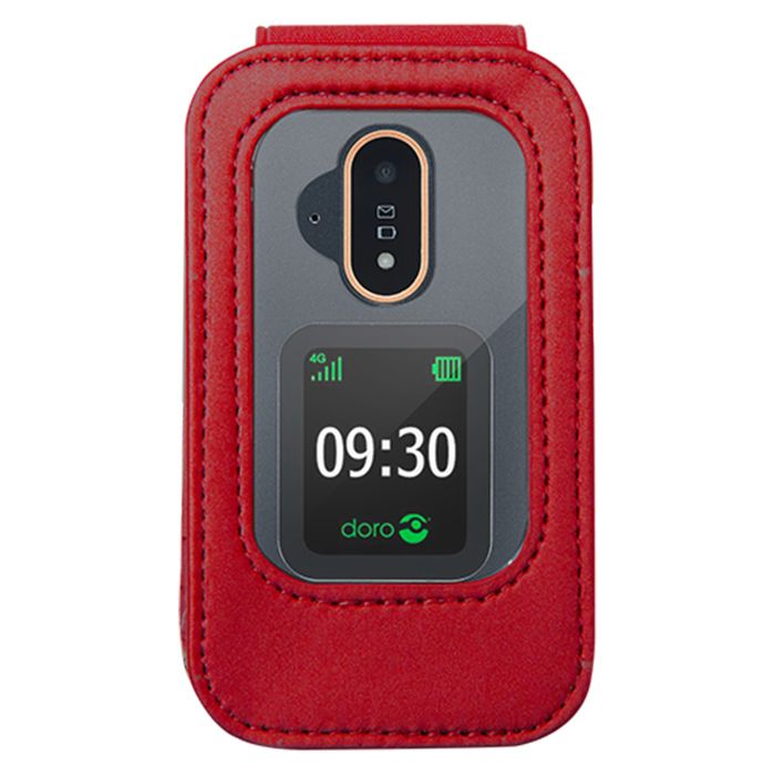 Doro - Leva L30 - Téléphone Portable Senior - Téléphone À Clapet 4G Débloqué - Écran Externe - Son HD - Appareil Photo -Touche d'Assistance avec GPS - Socle Chargeur Inclus - Rouge/Blanc