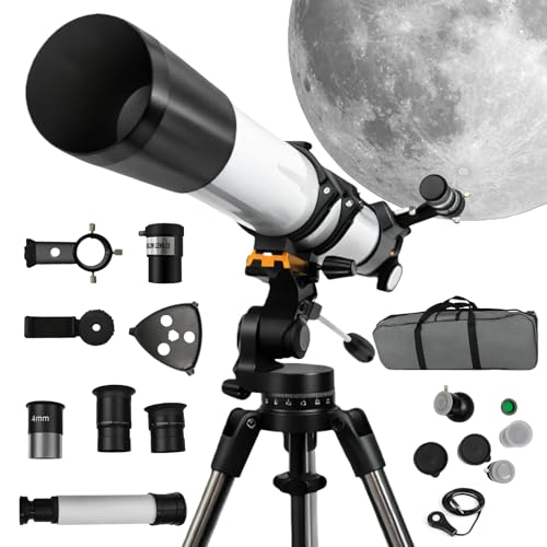 Télescope, 80 mm Ouverture 500 mm Telescope Astronomique Enfant et Adultes, Télescope de Voyage Compact et Portable pour Débutants avec Trépied, Adaptateur pour Téléphone, Sac à Dos et Autocollants