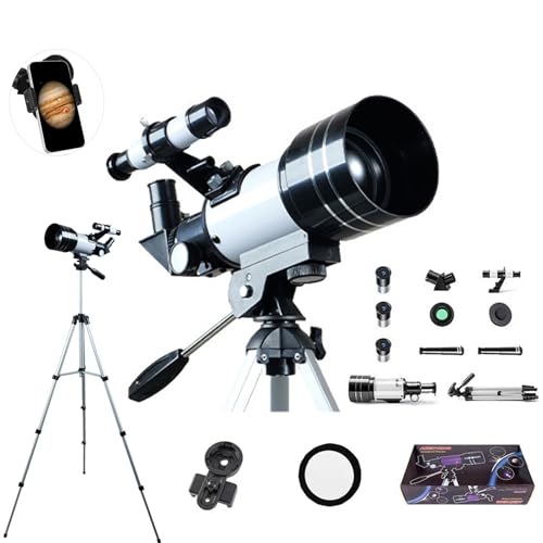 Télescope astronomique Adulte, Telescope astronomique pour Enfants, 300/70 mm, élescope Adulte débutants, astronomes Amateurs, avec trépied, 3 oculaires et Adaptateur de téléphone