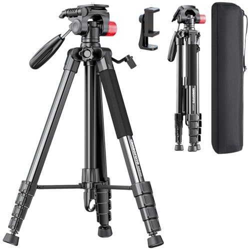CAMBOFOTO Trépied pour Appareil Photo 188cm, Support de téléphone et Sac de Voyage Inclus, Compatible avec appareils Photo Reflex numériques, téléphones Portables, projecteurs, webcams et télescopes