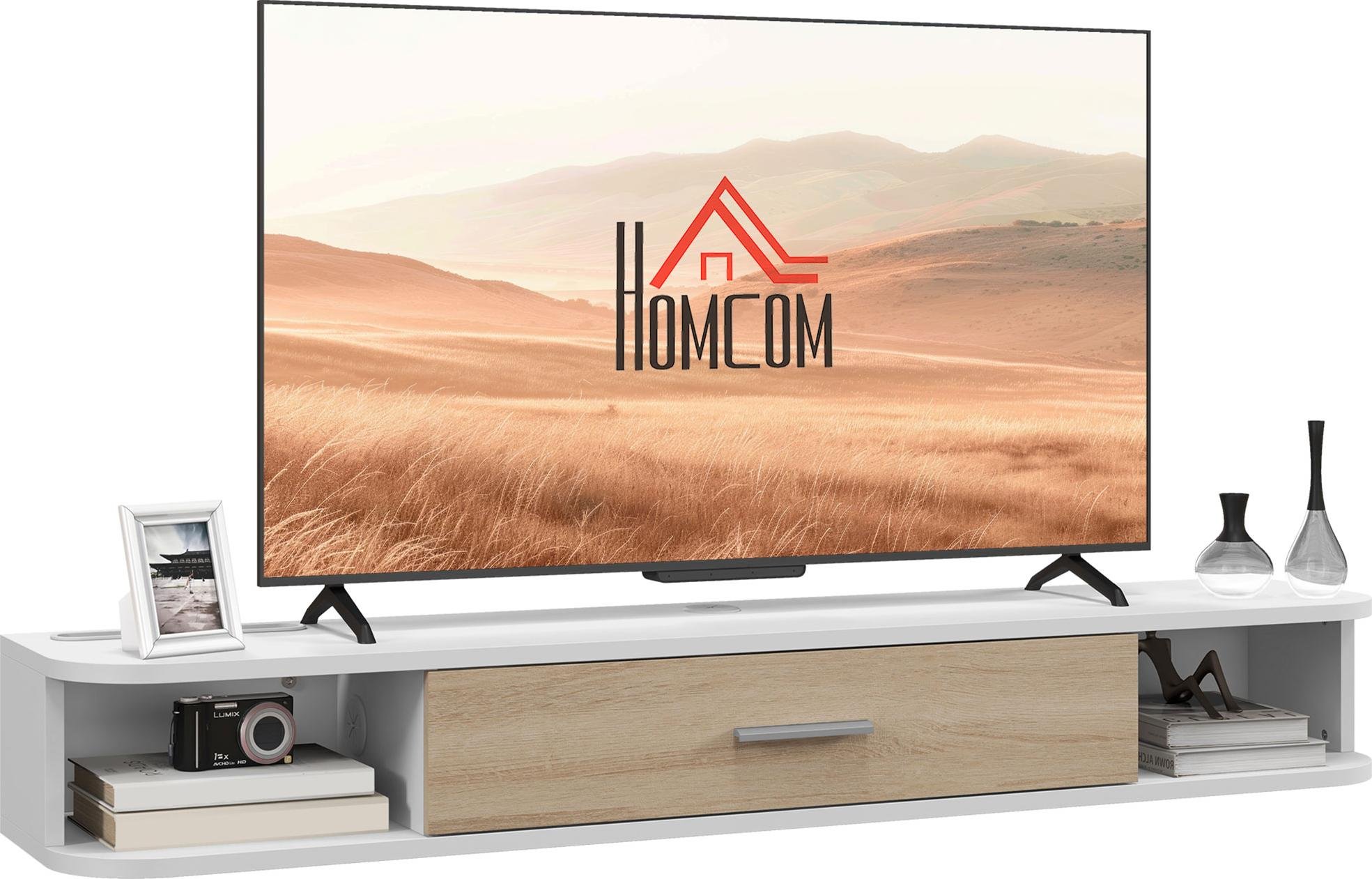 HOMCOM Meuble TV mural banc TV meuble pour télévision jusqu'à 50 pouces avec 2 compartiments ouverts et armoire à porte rabattable 120l x 26P x 16H cm Blanc