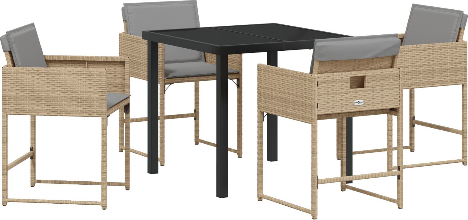 set de jardin 5 pièces avec coussins beige Poly Rattan, table de jardin noire 80x80x73 cm Tempered Glass, chaises de jardin DesignMöbel Nouveau