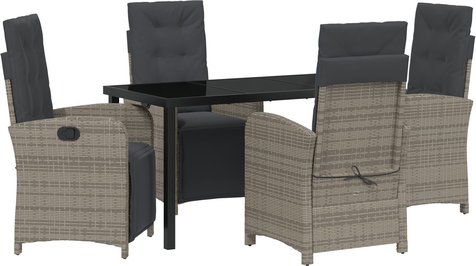 set de 5 tables de jardin avec coussins gris Poly Rattan, table de jardin noire 140x80x73 cm Tempered Glass, chaises de jardin DesignMöbel Nouveau