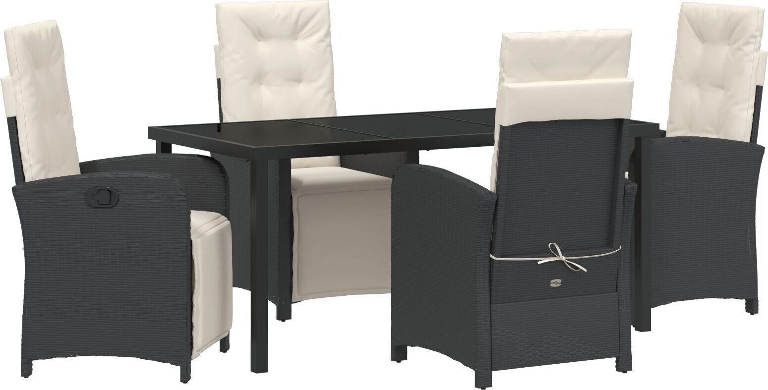 ensemble de jardin 5 pièces avec coussins Poly rotin noir, table de jardin noire 160x80x73 cm Tempered Glass, chaises de jardin DesignMöbel Nouveau