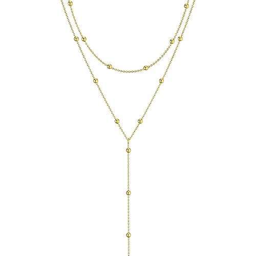 TenaLucy Chaîne Longue en Y pour Femmes,Collier Long Superposé pour Femme Collier de Perles Multicouches Bohemia Layered Y Colliere Chaîne Bijoux Simples en Or/Argent Bijoux pur Femmes (or)