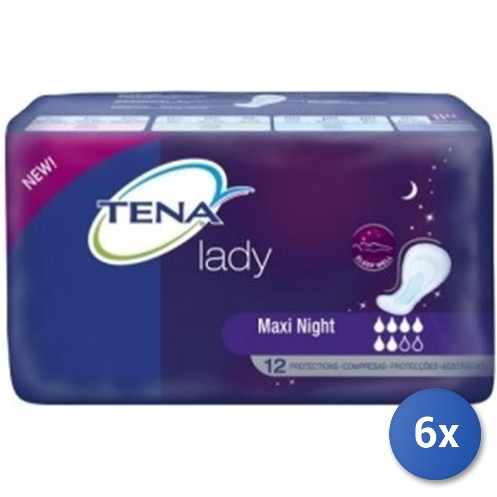 6X Lot Tena X Incontinence Lady Maxi Nuit 12 Pièces 6 Gouttes