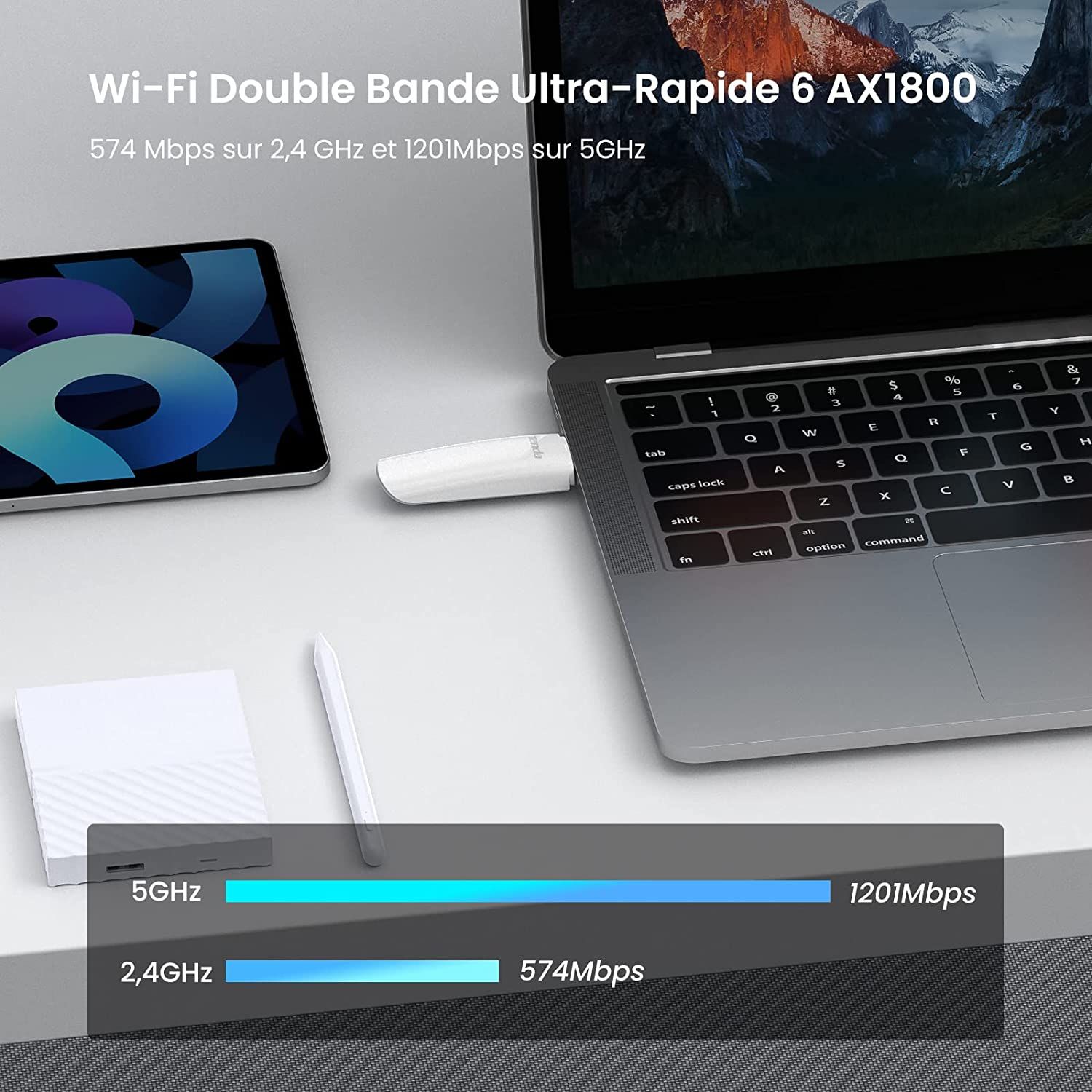 clé wifi 6 bi-bande AX1800, Tenda U18, Dongle WiFi USB 3.0, 1800Mbps pour PC-Desktop-Laptop, Compatible avec Windows 11-10