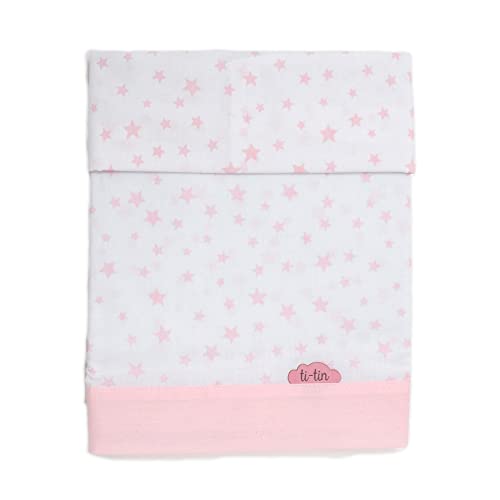 Ti TIN | Ensemble de draps pour Mini-Berceau 50×80 | Lot de 3 pièces (Drap Plat + Drap-Housse Ajustable avec élastiques + taie d’Oreiller) | Linge de lit pour Berceau | Popeline 100% Coton