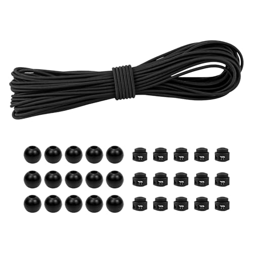 Episkey Tendeur Elastique 5mm 15m Noir, Corde Élastique Tendeurs avec Crochets, Sangle Elastique pour Bache, Velo, Crochet Fixation (Noir, 5mm x 15m)