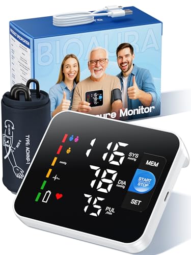 Tensiometre Bras, Tensiomètre Bras Professionnel avec écran LED HD pour la Circonférence du bras 22-42 cm, peut Contenir 2 x 199 Utilisateurs, Câble de Charge de Batterie AA/Type-C