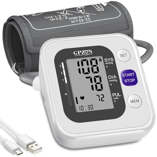 GPZON Tensiomètre Électronique Professionnel Pour Le Haut du Bras, Manchette ajustable 22cm-42cm, Mémoire 2x120, Blanc
