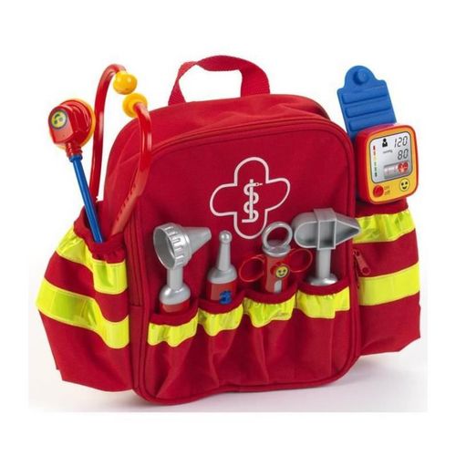 Theo Klein 4314 Sac à dos de secouriste, Avec stéthoscope, seringue et beaucoup d'autres accessoires, Tensiomètre électronique avec bruitage, Dimensions : 28 cm x 25 cm x 8, 5 cm