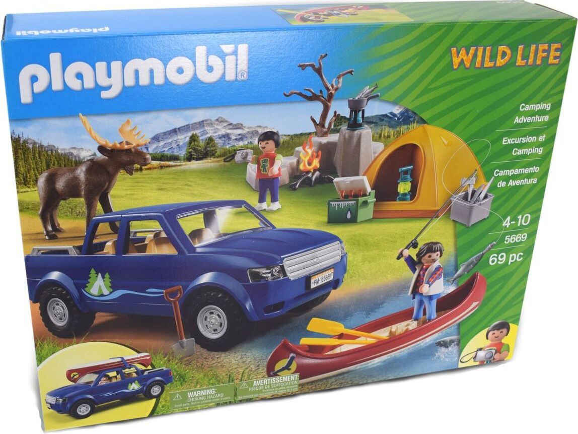 PLAYMOBIL 5669 Wild Life 69pcs Excursion camping avec pick-up, bateau & tente