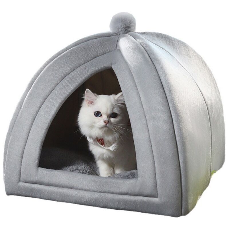(Gris)Panier Chat avec Amovible Lavable Maison de Chat Tente pour Chat Animal lit Doux pour Chat Maison Grotte Pliable(Gris M)