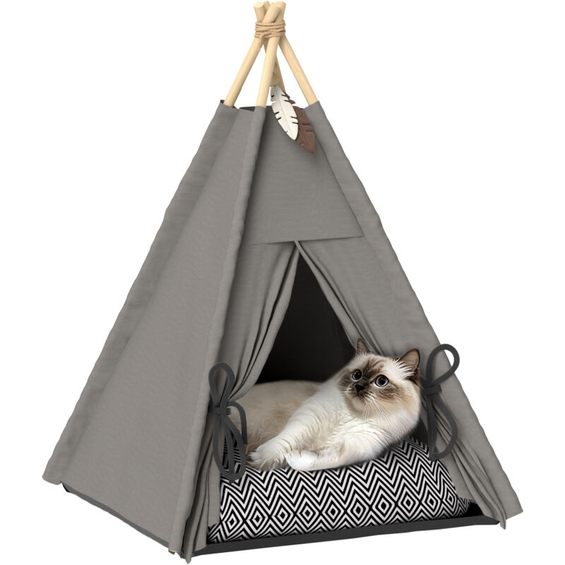 Tente tipi pour chat et chien, couchage confortable avec coussin, niche d'intérieur grise pour animaux