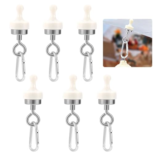 CLDURHGE Aimant Crochet Fort Lot de 6 – Crochet magnétique 2KG avec Mousqueton pour Camping, Tente, Cuisine, Bureau, Garage – Crochet Suspendu Portable Blanc 100x25mm