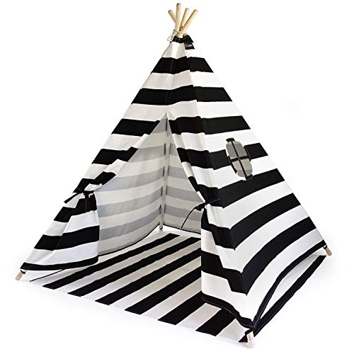 HEJ LØNNE Moritz & Moritz Tipi Enfant avec Tapis - Tipi pour Enfants Tente Tipi de Jeu Idée Cadeau - avec Tapis de Sol et fenêtres - Tente Enfant Intérieur e Jardin (Noir rayé)
